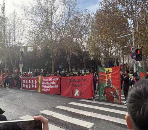 在本场比赛赛前,有河南球迷在球场外声援外援阿奇姆彭。在此前成都与河南队的比赛中,阿奇姆彭遭看台上的成都球迷种族歧视,最终涉事球迷被成都公安行政拘留,成都蓉城俱乐部被中足联罚款50万元。