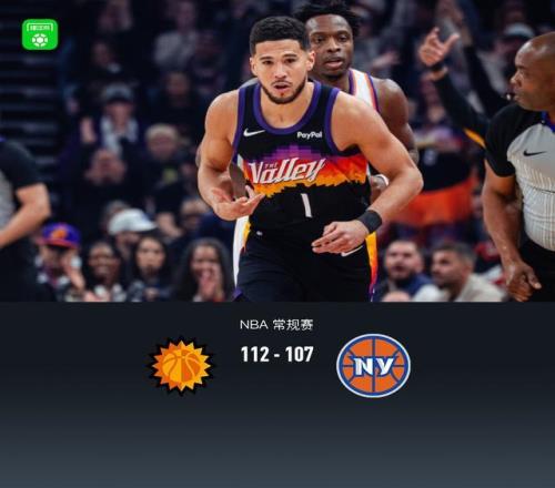 第四节太阳德文-布克拿下5分,尼克斯OG-阿奴诺比拿下9分,最终太阳112-107战胜尼克斯