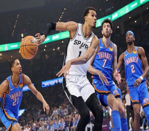 末节,乔命中三分后沃特斯回应三分,文班亚马与霍姆格伦又缠在一起响哨,文班亚马再造犯规裁判看回放没升级,文班亚马两罚一中后被吹进攻干扰球,哈珀三分命中,卡斯尔犯规,凯尔登三分命中缩小到12分,马刺犯满送SGA罚球两罚全中,尚帕尼再来一个三分,卡鲁索反击命中,亚历山大再造犯规两罚全中比赛已经失去悬念。